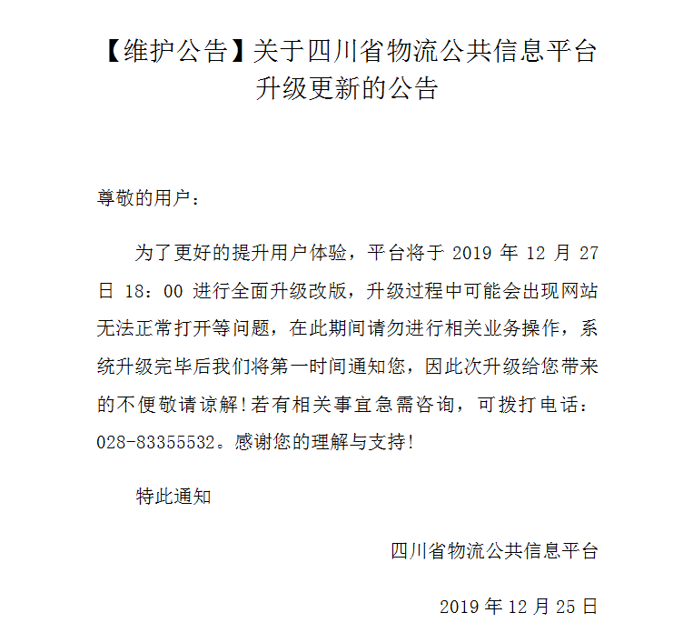 关于四川省物流公共信息平台升级更新的公告