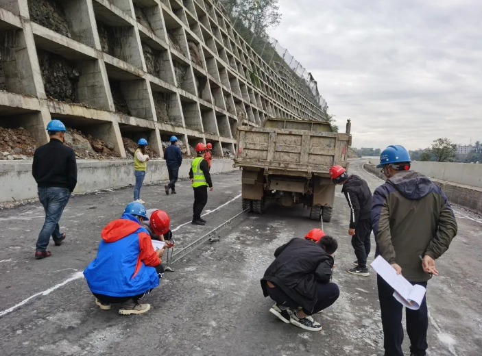交验现场,各单位工作人员在交验过程中秉持严谨认真的态度,严格依据相关标准和规范,对路基的各项关键指标展开全面细致的检测与评估。其中,路基平整度良好,车辆行驶平稳无明显颠簸感;压实度经专业设备检测,达到设计要求的高标准,确保了路基的稳固性;弯沉值也在合理范围内,体现出路基的承载能力符合预期。此外,还对路基的宽度、坡度等指标进行了测量,均满足设计规范。