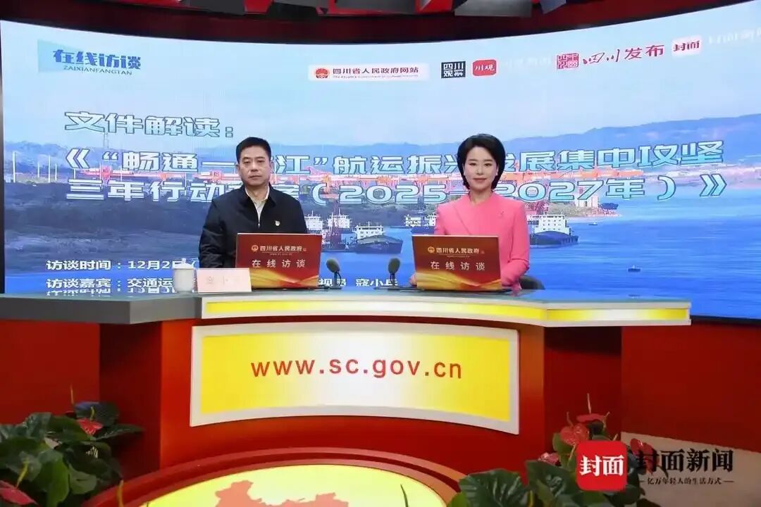 近日,四川省政府印发了《“畅通一条江”航运振兴发展集中攻坚三年行动方案(2025—2027年)》(以下简称《行动方案》)。12月2日,四川省交通运输厅总规划师、一级巡视员寇小兵做客四川省人民政府网站在线访谈栏目,对《行动方案》内容解读。他指出,四川将从五个方面重点开展航道建设,预计到2027年,四川打通航道“卡点”“堵点”将取得实质性突破。