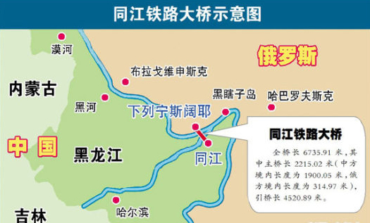11月23日,记者从有关部门获悉,中俄两国共同出资建设的同江—下列宁斯阔耶黑龙江界河铁路大桥(即中俄同江铁路大桥),项目筹备正在加紧推进中,中方已确定投资20.26亿元人民币。该桥作为横跨黑龙江、位于中国和俄罗斯边境的跨境铁路大桥,将成为中俄3000多公里黑龙江界江上第一座桥梁。