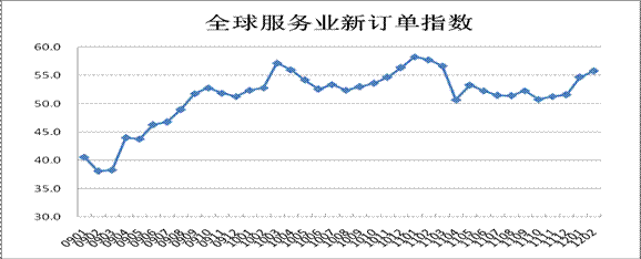 2月,JP摩根全球服务业商务活动指数为56.3%,环比上升1.2个百分点,连续四个月环比上升,达到近12个月的新高,表明全球服务业经济活动近期保持持续增长态势。在各主要国家中,美国服务业活动的强劲表现引领全球服务业经济的增长。此外,巴西、香港、俄罗斯、印度、英国和日本的经济活动均表现出较好的增长态势。而欧元区的形势仍不乐观,其商务活动指数连续五个月处于下降区间。