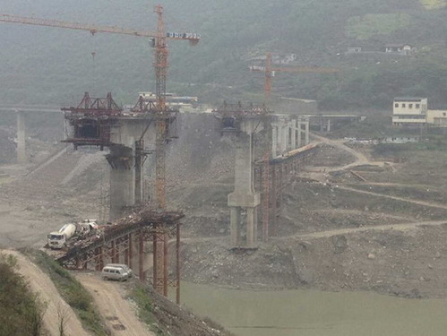 三是寿江大桥:寿江大桥基础及下部结构完成,两联2x22m连续梁完成,4#墩0#-5#块完成,5#墩0#-5#块完成。