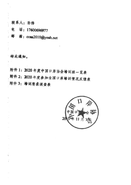 附件:中国口岸协会 关于2020年度中国口岸协会全国口岸培训计划的通知