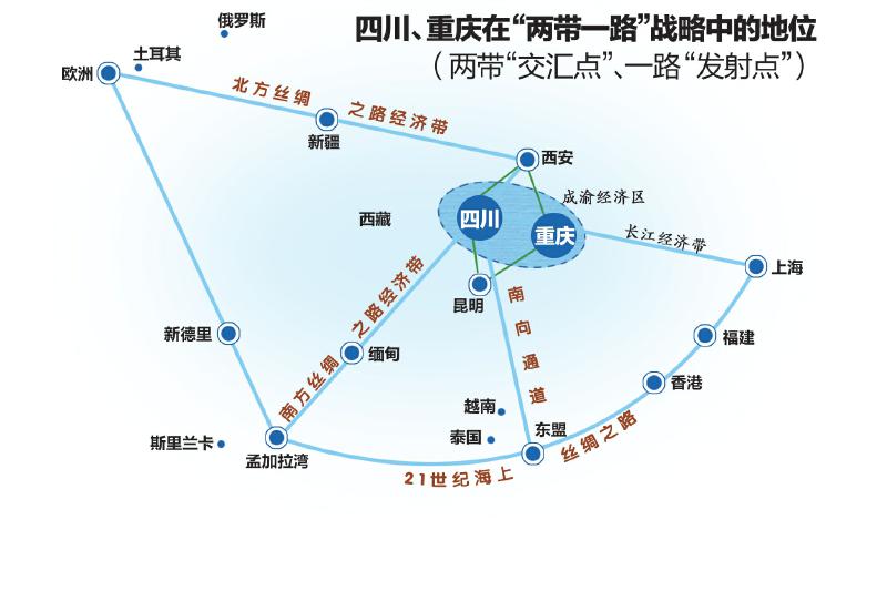 在深入实施“一带一路”发展战略的大背景下,成都、重庆、西安、昆明四城联合提出构建“成渝西昆菱形经济圈”,以更好地实现“一带一路”战略和长江经济带战略的互联互通。