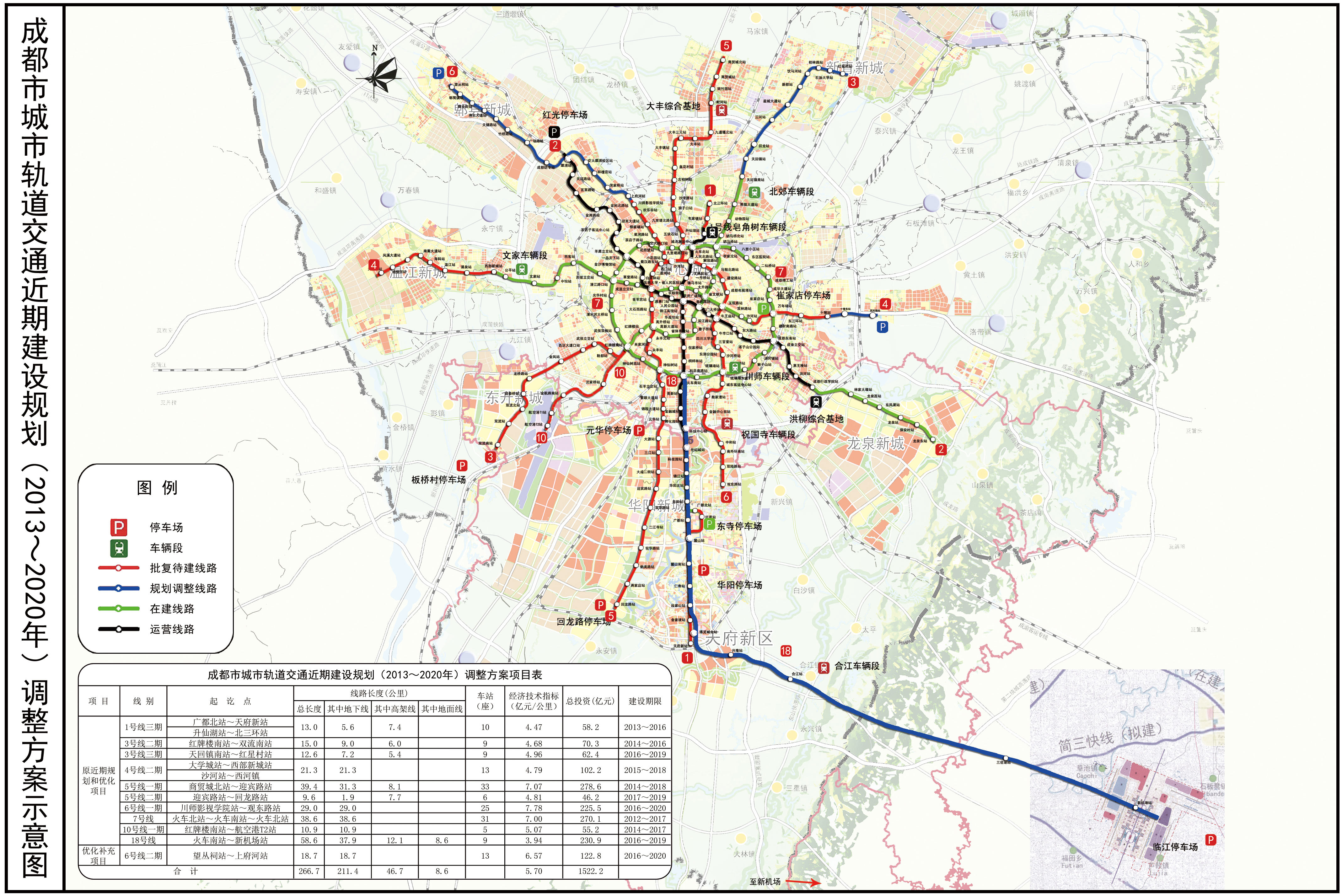 今年7月11日,国家发展和改革委员会正式批复成都市城市轨道交通第三期建设规划(2016-2020年)。本轮规划新增8号线一期、9号线一期、10号线二期、11号线一期、17号线一期等5个项目,总长度124.2公里,估算投资831.41亿元。下一步,成都地铁公司将按照上级部门要求,加快项目前期研究工作,争取规划项目尽早开工建设。按照该规划,至2020年,成都市将形成13条线路,总长508公里的轨道交通网络。