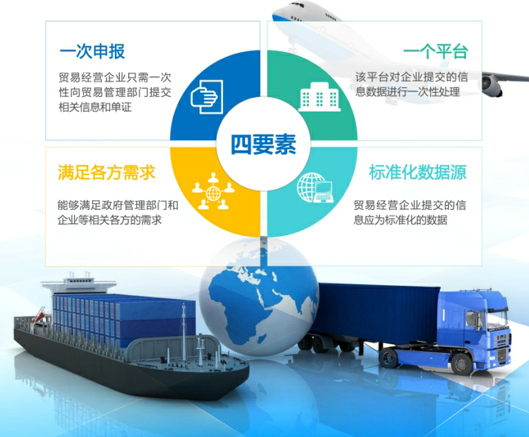 国内:实现申报人通过“单一窗口”平台一点接入、一次性提交满足口岸管理和国际贸易相关部门要求的标准化单证和电子信息,相关部门通过电子口岸平台共享数据信息、实施职能管理,处理状态(结果)统一通过“单一窗口”反馈给申报人。