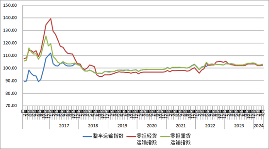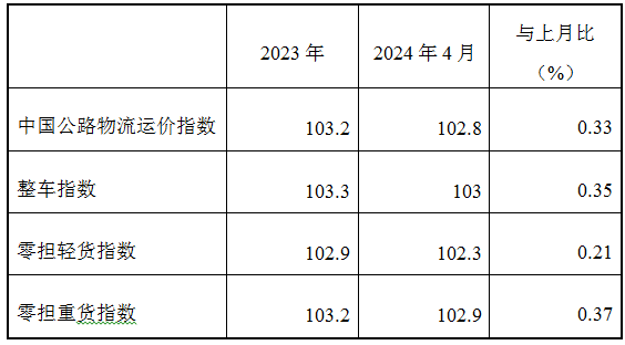 2024年4月份中国公路物流运价指数为102.8点