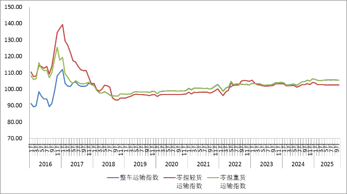 2025年10月份,由中国物流与采购联合会和林安物流集团联合调查的中国公路物流运价指数为104.9点,环比回落0.10%,同比去年回落0.11%。从月内看,第二、三、四周运价指数环比回升,第一、五周运价指数环比回落。