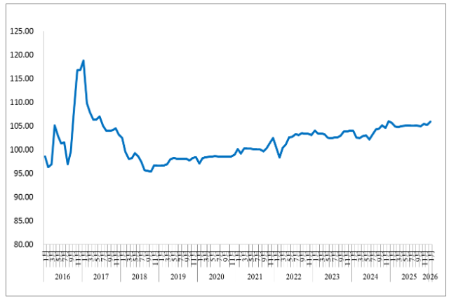 2026年1月份中国公路物流运价指数为105.9点