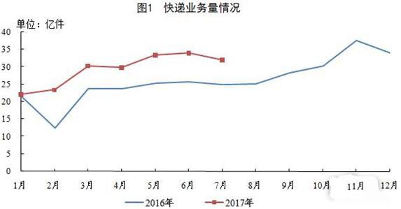 1-7月全国快递服务企业业务量达205.2亿件 同比增长30.3%
