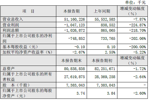 苏宁云商近日披露业绩快报,公司上半年营业总收入511.6亿元,同比下降7.87%;归属于上市公司股东的净利润亏损7.49亿元,上年同期盈利7.34亿元,同比下降202.06%。这是苏宁自2004年上市以来首次出现中期业绩亏损的情形。