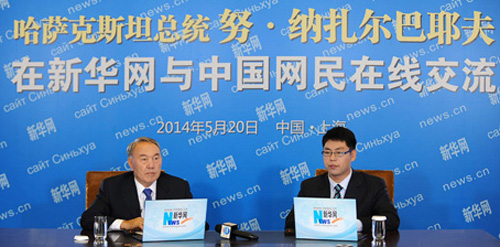 正在中国访问并出席在上海举行的第四次亚信峰会的哈萨克斯坦共和国总统努尔苏丹·纳扎尔巴耶夫昨天通过新华网与中国网民在线交流互动,回答了亚信发展、哈中关系、两国经贸、文化交流、能源合作等问题。