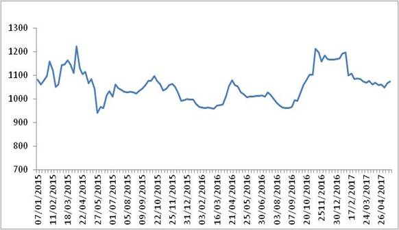 本周(2017年5月15日~5月19日),由中国物流与采购联合会和林安物流集团联合调查的中国公路物流运价指数1074.7点,连续两周走高,环比回升0.67%。
