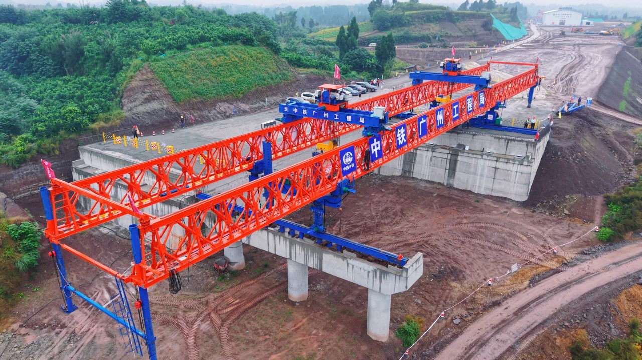 成渝高速公路扩容项目首梁在资阳段架设成功