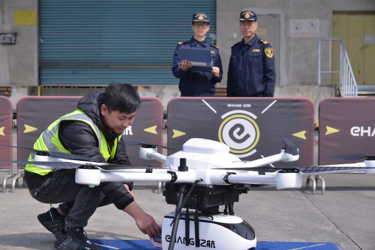 穗东海关关员监管跨境电商无人机配送包裹。陈志军/摄