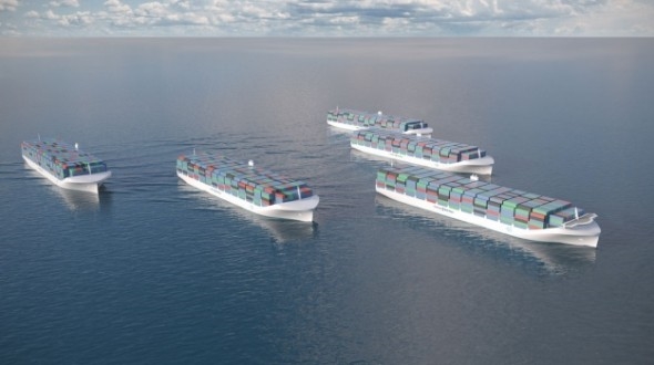 这种货轮的个头有三个足球场大小,因为取消了船员生活区和传统舰桥设计,因此船体更轻,更加节省燃料。另一方面,也能够提供更多装载货物的空间。