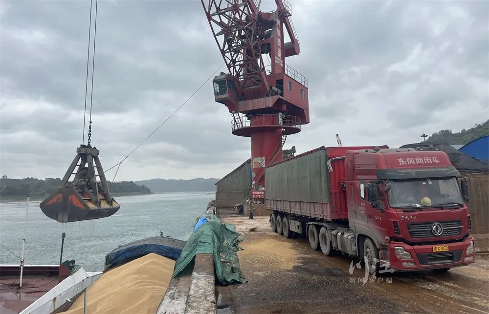 4月6日上午9点,位于泸县太伏镇永利村的神仙桥码头,从湖北荆州沿长江而上的1000余吨小麦正在卸货;往上游800米处,一艘来自江苏的铁矿石货船刚卸完货;货场上,装满矿石的大型货车准备发往威远……