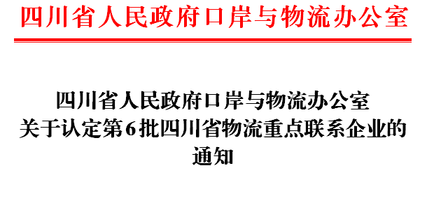 四川省人民政府口岸与物流办公室 关于认定第6批四川省物流重点联系企业的通知