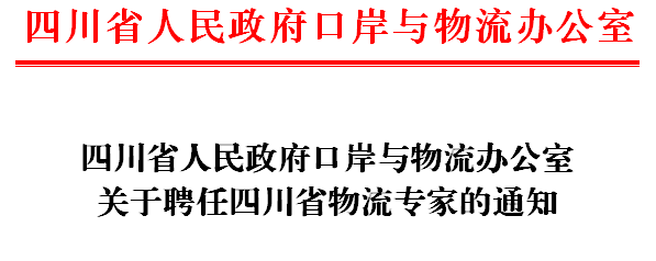 四川省人民政府口岸与物流办公室 关于聘任四川省物流专家的通知(2017)