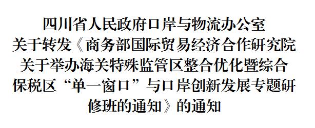 关于转发《商务部国际贸易经济合作研究院关于举办海关特殊监管区整合优化暨综合保税区“单一窗口”与口岸创新发展专题研修班的通知》的通知